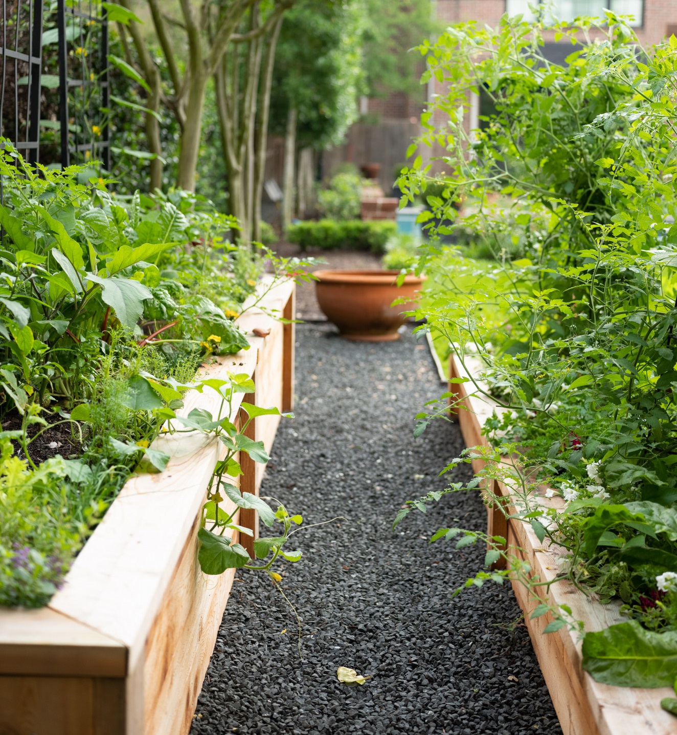 We harvest fresh vegetables daily thanks to their kitchen garden setup!